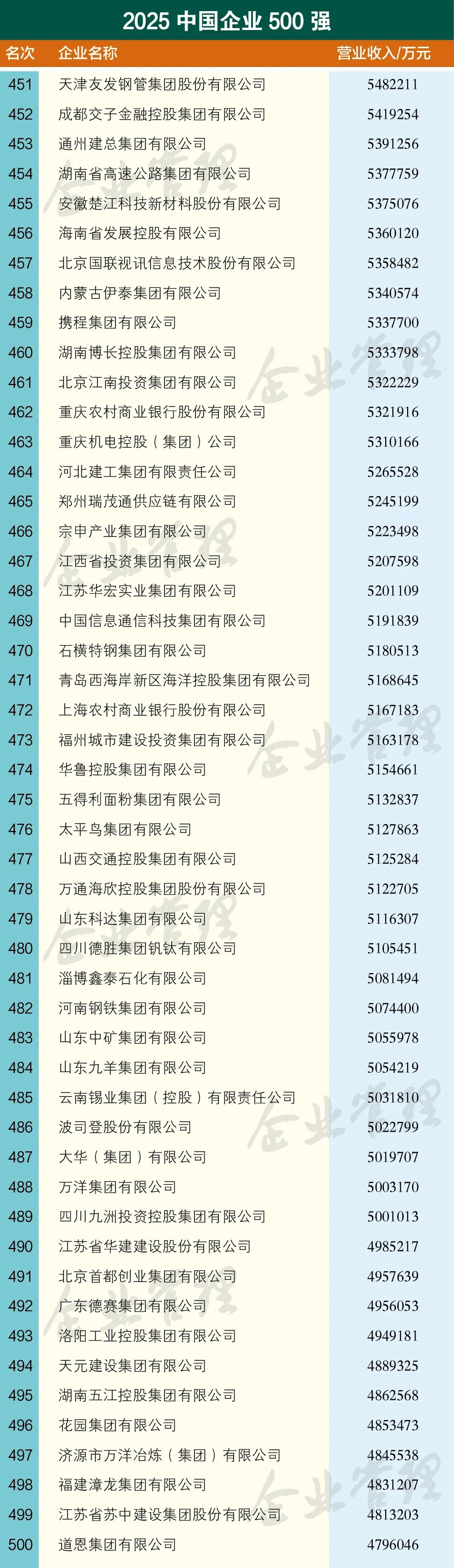 2025中国企业500强营业收入达110.15万亿元,入围门槛实现23连升,达479.60亿元,提升5.79亿元;实现归属母公司所有者净利润总额4.71万亿元,增长4.39%。
