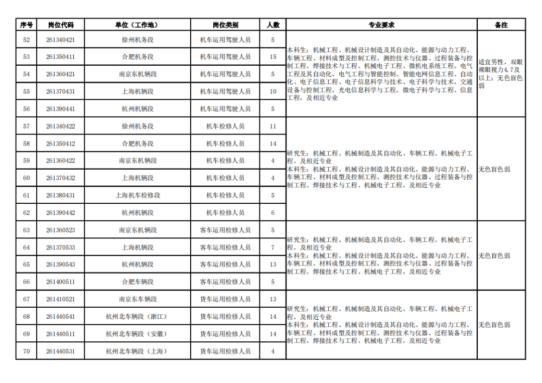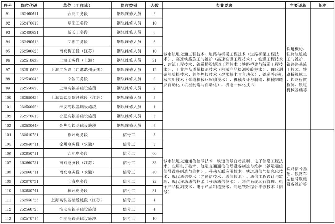 4、符合招聘岗位要求的学历、专业等条件,所学专业为铁路专业方向,所学课程包含铁路专业课程,未与任何单位签订就业协议。
