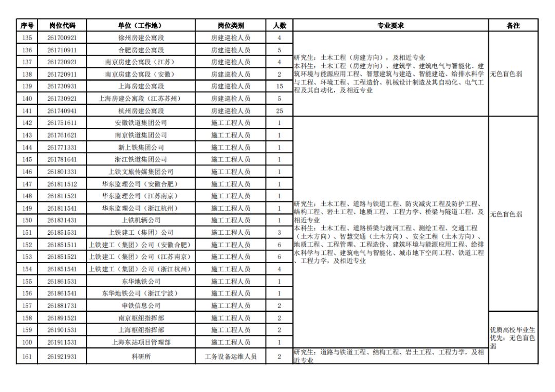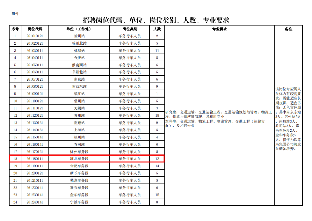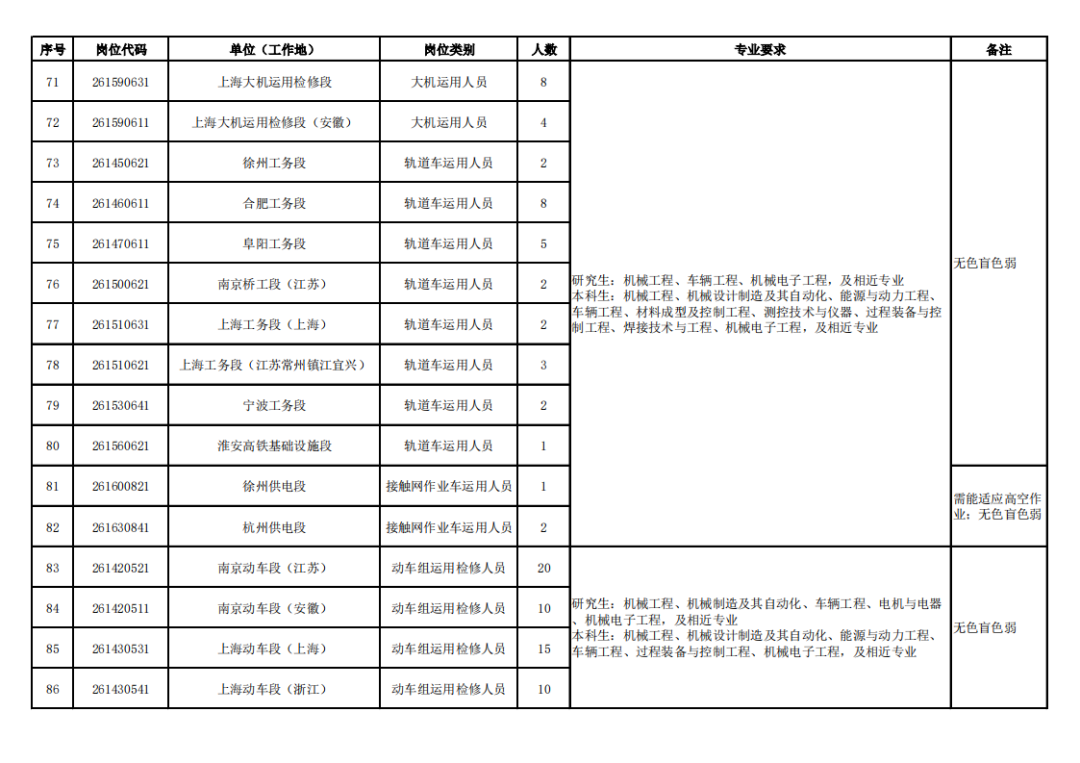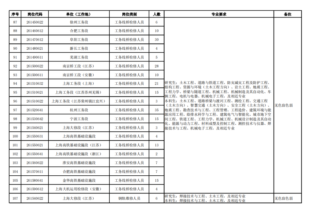 2、遵纪守法,品行端正,热爱铁路事业;素质能力适应招聘岗位工作要求,能够适应铁路沿线偏远地区、野外作业及长期夜班工作。