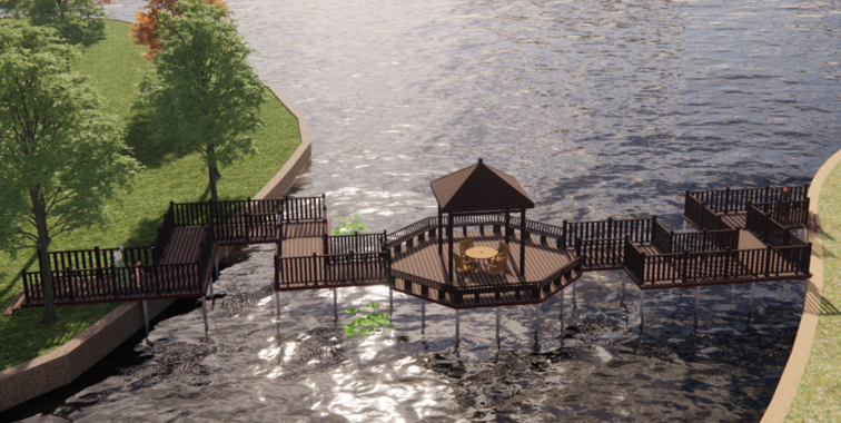 准备在公园塑木浮桥东边
