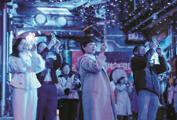 走进老电厂片区,采访团首先看到了城市AB面的生动对话:A面是红砖厂房、钢铁桁架、蒸汽管道……是承载着厚重历史的工业遗存;B面则是声光电交织的赛博空间、机甲巡游的潮玩现场、年轻力聚集的文创新地标。在工业博物馆里,一件件工业实物,一幕幕工业影像,配合全息投影、VR互动等数字技术,系统呈现了淮北“动力之源”到“创新智城”的转型之路。在夔牛天街,机械夔牛“雷雷”霸气亮相!21米上古巨兽破开朦雾,一步一震撼,淮北人见证的,是行走的开拓精神。