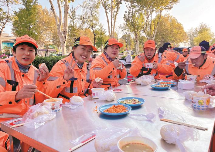 环卫工人杜立梅说:“早餐很好吃,有包子、鸡蛋、油茶,吃着既暖胃又暖心。”